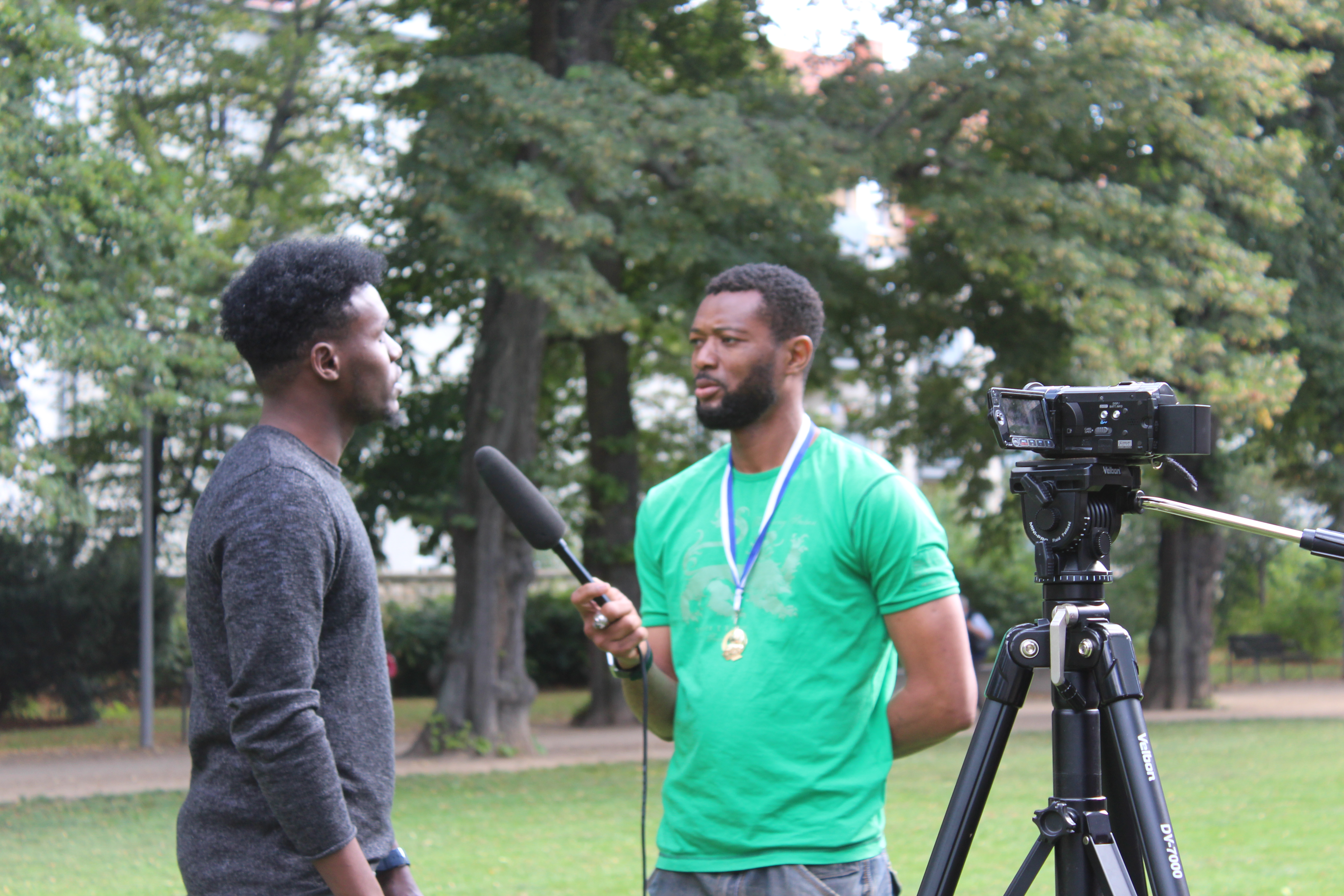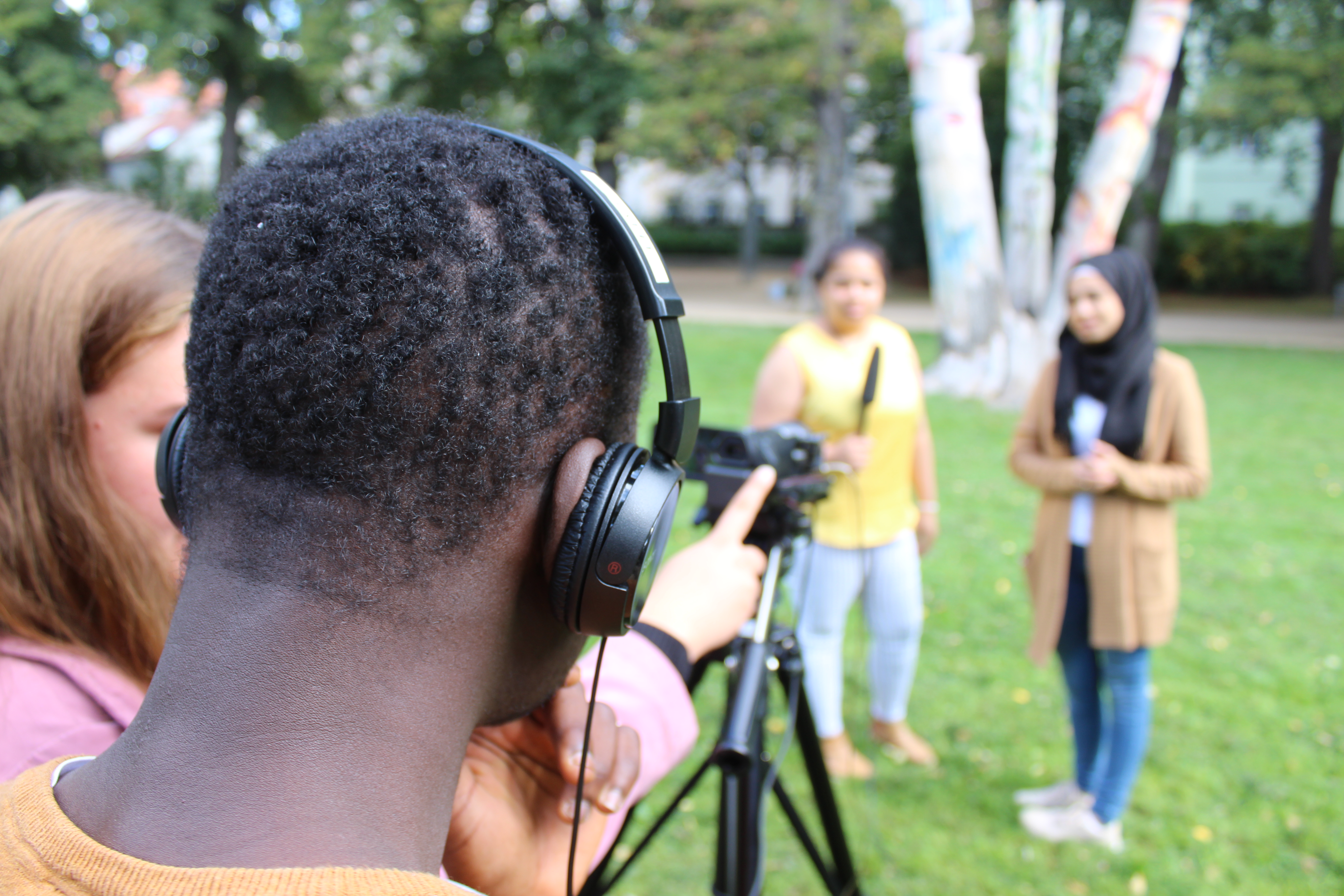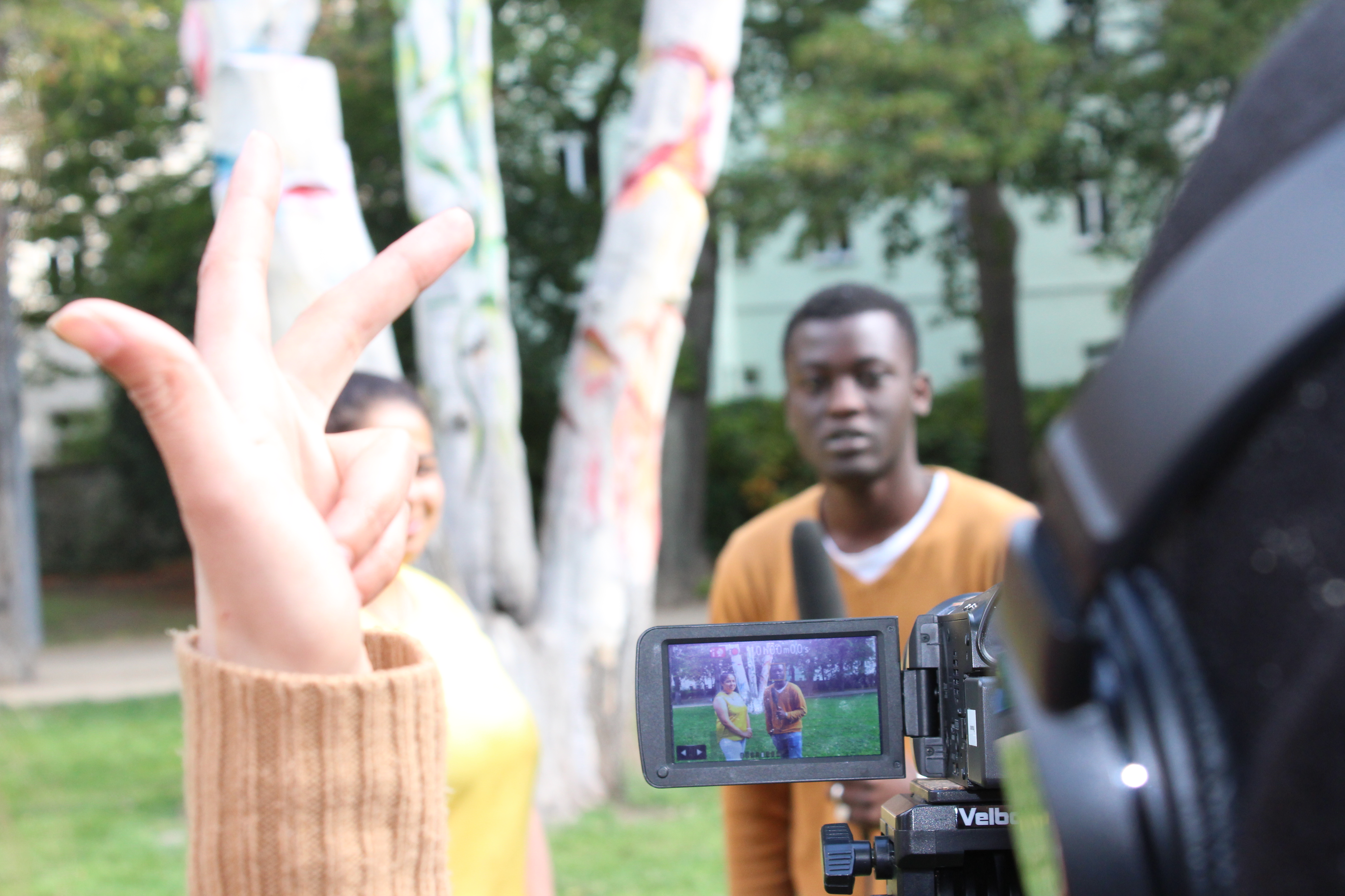 Den ersten Tag unseres Projekts starteten wir mit einer Kennlernrunde im Brühler Garten. Nach einer kurzen Aufwärmphase, wurden wir in die Videokameras, Fotokameras sowie Mikros eingewiesen. Hierbei war es uns möglich, erste Erfahrungen mit dieser Technik zu sammeln. Unsere erste Aufgabe bestand darin, dass wir den Brühler Garten mit einer Fotokamera erkunden sollten, in diesem Zusammenhang konnten wunderschöne Eindrücke und Orte festgehalten werden. Daraufhin haben wir uns in kleinen Gruppen gegenseitig interviewt, um ein Gefühl für die Methodik eines Interviews zu bekommen. Die Interviews dienten als eine gute Vorbereitung für die nächsten Projekttage, an denen wir unbekannte Person in der Innenstadt über Erfurt befragen sollten.